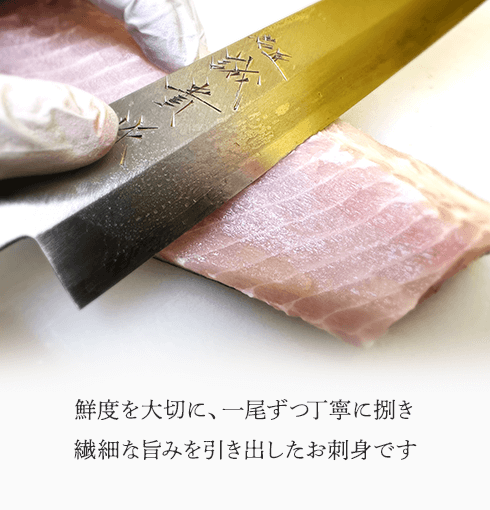 「黒耀水」により臭みなく育ったチョウザメを使用し、捌きたてを即ー60℃冷凍することで生食用としての品質と衛生管理を徹底。
